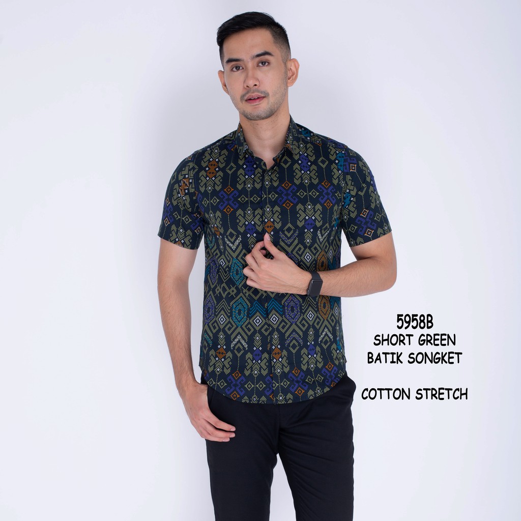 Gratis ongkir kemeja batik pria lengan pendek motif songket.